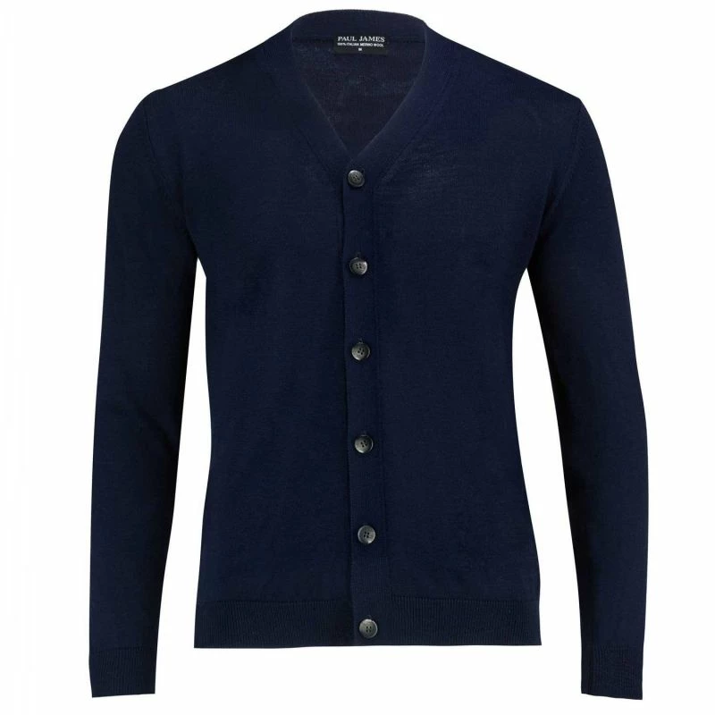 Best deal 🎁 Mens Lightweight Extra Fine Merino Wool Ravensdale Cardigan – Navy By Paul James Knitwear 🀩