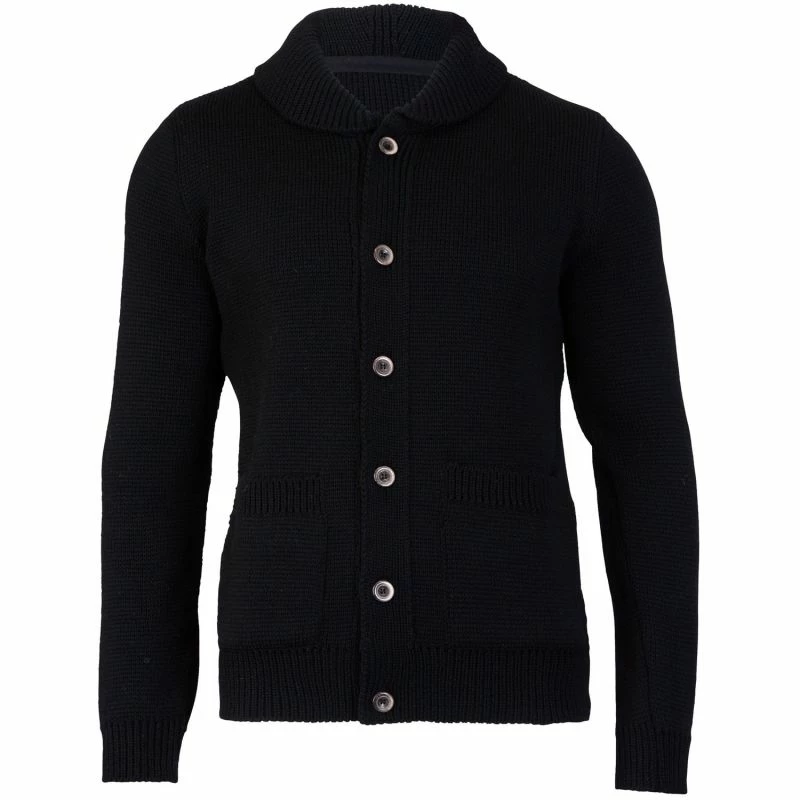 A beautifully constructed masculine cardigan coat in 100% South American merino wool. This knit is a sure way to stand out on unpredictable days out, dressed up or down this wool cardigan was designed to stand out from the crowd. The shawl collar doubles up as a scarf which offers an outdoor touch to this winter essential.
