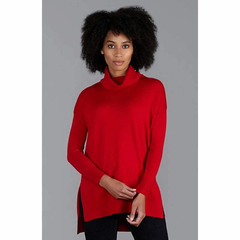 This sweater beautifully drapes into a luxurious silhouette. It has aΒ contemporaryΒ roll neck, side split details, and a ribbed cuff and hem.