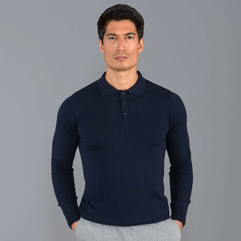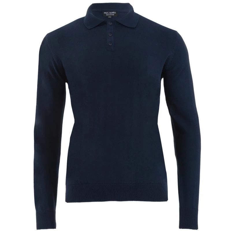 Cheapest πŸŽ‰ Mens 100% Cotton Long Sleeve Knitted Hall Polo πŸ‘• Shirt – Navy By Paul James Knitwear 🌟