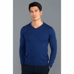 Hot Sale 𧨠Mens Extra Fine Merino Wool V-Neck Chester Jumper – Indigo By Paul James Knitwear π