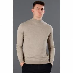 Wholesale π Mens 100% Cotton Narrow Mock Turtleneck Jumper Sand By Paul James Knitwear β¨