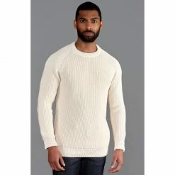 Best Sale π Mens 100% Cotton Fisherman Rib Knit Clark Jumper Ecru By Paul James Knitwear π