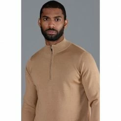 Best Sale π Mens Extra Fine Merino Wool Quarter Zip Jumper – Camel By Paul James Knitwear π