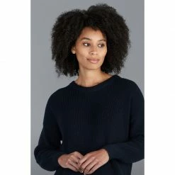 Outlet π― Womens 100% Cotton Ribbed Crew Neck Tiffany Jumper – Navy By Paul James Knitwear β€οΈ