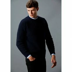 Wholesale β Mens 100% Merino Moss Stitch Fisherman Jumper Navy By Paul James Knitwear π